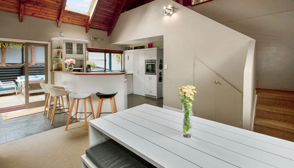 The home offers a real uniqueness with its high ceilings, split levels and quirkiness right down to the Italian style shuttered window opening out from the master bedroom.